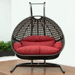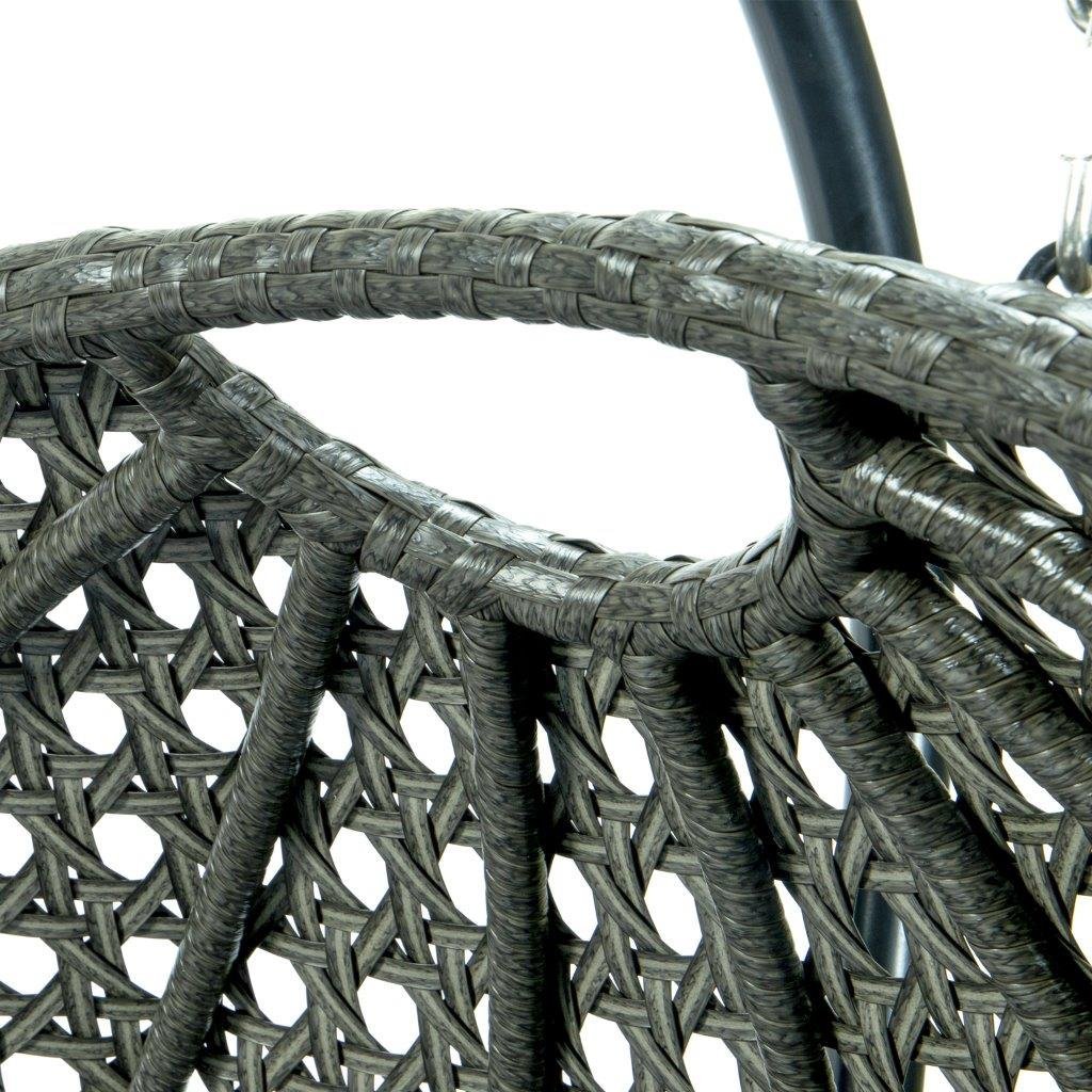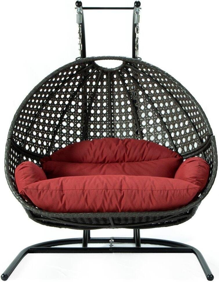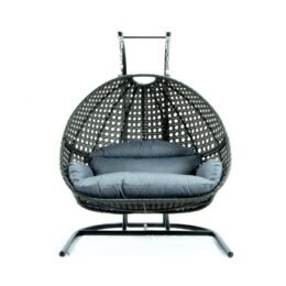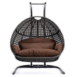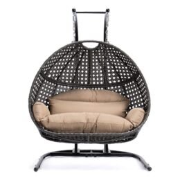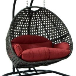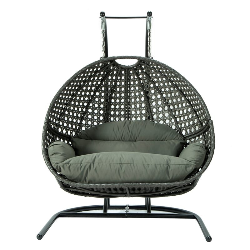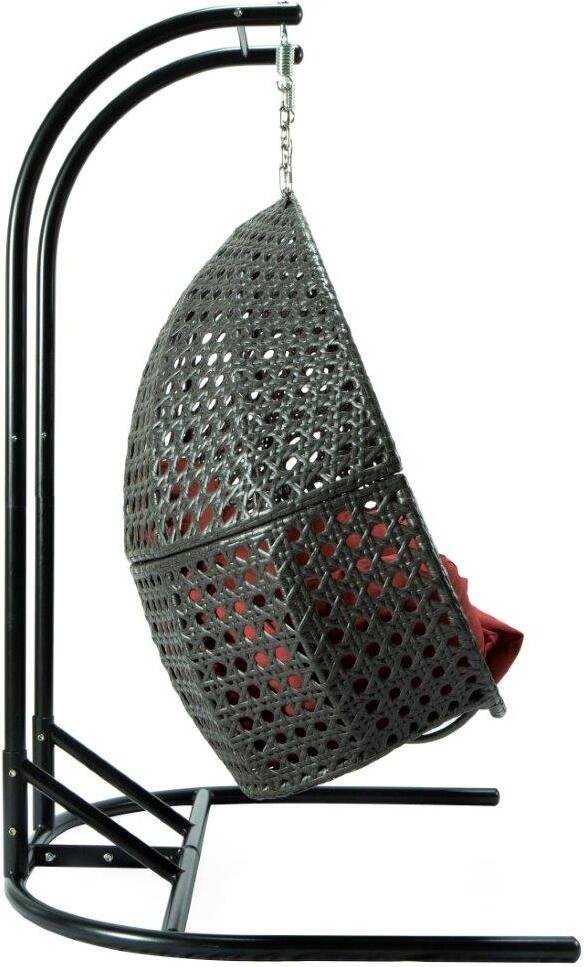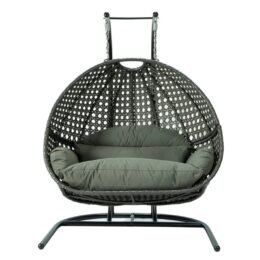 This fun egg-shaped porch swing chair that fits 2 people comfortably was built to last in the outdoors with its strong durable iron frame it will be perfect for all weathers. Sit in luxurious comfort while surrounded by the peace and beauty of your backyard. or enjoy a good book indoors with this comfortable hanging chair.