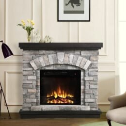 - This fireplace is a perfect combination of cutting-edge technology. consumer-oriented design philosophy. and traditional classic aesthetics. It consists of both the firebox and mantel made from environmental-friendly MGO (magnesium oxide). The advanced MGO technology brings you the header and hearth of authentic solid wood finish and mantel wall of stone-brick appearance at the same time. Assembly-free packaging. remote control. flickering flame effect. ultra-quiet DC (direct current) blower. and thermal overload stop. and more features will elevate your whole user experience.