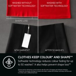 Product FeaturesFull load capacity (Kg)10Max Spin Speed1400DesignExtra Large DisplayDepth (mm)660SoftWaterSoftWaterProSteamProSteamProSense+ProSense+AbsoluteWash 49′AbsoluteWash 49′Key SpecificationEnergy RatingA – 20%Washing Capacity (kg)10Max Spin Speed (rpm)1400Program ListAbsolutewash 49Min. Eco 40-60. Cottons. Synthetics. Delicates. Wool. 20min 3Kg. Steam. OutDoor. Hygiene. Rinse. Spin/DrainPush Button FunctionsON/OFF. Temp. Spin. Prewash/Stain. Time Save. Extra Rinse. Plus Steam. +. -. Remote Start. Finish in. Start/PauseNoise Rating (dB)ADimensions (mm) (HxWxD)847x597x660(max)Inlet Hose Length (cm)Full SpecificationSpecificationIncludes 5 year warrantyWool Plus Programme: The only wool programme in the market with a cool down at the end of the wash phase preventing chill-shock when the cold rinse begins. ensuring shrinkage is minimised.Delicate Programme: The delicate programme gently washes the most delicate of fabrics.Cottons Programmes: Includes regular cottons and cotton economy programmes.Child Safety Lock: Keypads can be locked to ensure temperatures and programme selectors can not be changed – making certain your laundry is always safe.PerformanceWashing Capacity (kg): 10Max Spin Speed (rpm): 1400Motor Type: Inverter Motor+Drum Volume (L): 69Drawer Compartments: 2+1Connectivity: YesEco 40-60 Programme Duration (Hours & Minutes): 3:58InstallationInlet Hose Length (cm): 150Outlet Hose Length (cm): 145Depth Max (mm): 660Cord Length (m): 1.62Plug or Hardwired: UK Moulded PlugTotal Electricity Loading (W): 2100Wheels/Feet: 4 adjustable feetVoltage (V): 230-240Required Fuse (A): 13Remaining Moisture (%): 53.5EnergyEnergy Rating: A – 20%Noise Rating (dB): AFrequency (Hz): 50Spin Energy Rating: BEnergy Consumption per 100 wash cycles (kWh): 41Noise (dB): 72OtherProduct Number (PNC): 914 501 225Program List: Absolutewash 49Min. Eco 40-60. Cottons. Synthetics. Delicates. Wool. 20min 3Kg. Steam. OutDoor. Hygiene. Rinse. Spin/DrainPush Button Functions: ON/OFF. Temp. Spin. Prewash/Stain. Time Save. Extra Rinse. Plus Steam. +. -. Remote Start. Finish in. Start/PauseDimensions (mm) (HxWxD): 847x597x660(max)Woolmark: Woolmark Green + WoolCare Ariel/NorthSeries: 9000Indicators: Time Save. Rinse. Steam Anticrease. Remote Start. Finish in. Start/PauseDrum Material: Stainless Steel150Connectivity