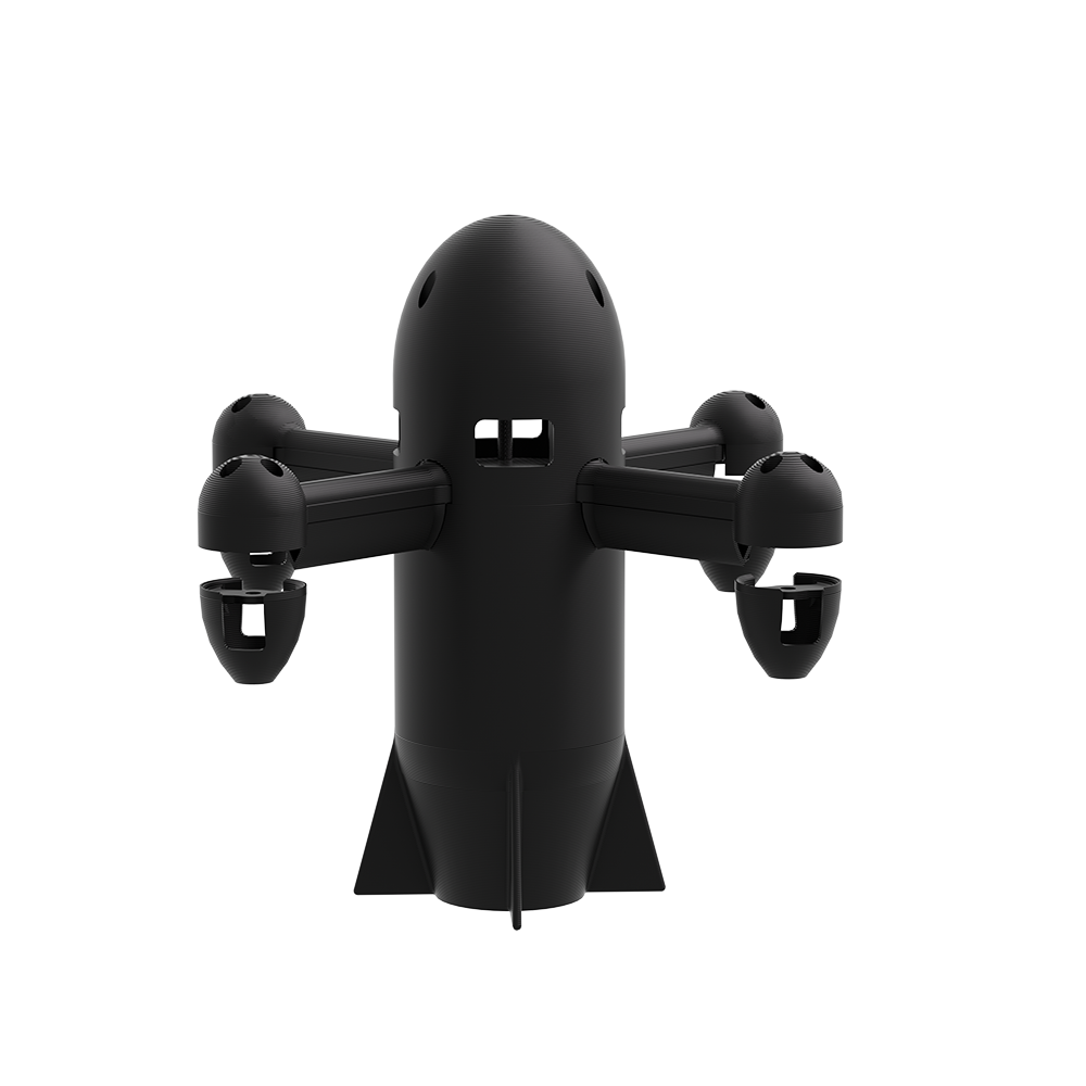 The aerodynamic shells of the AOS HS5 have been optimized with the use of CFD tools to minimize the drag on the drone at high speeds. The tail fins add aerodynamic stability for smooth footage. Aerodynamic spinners for the props minimize the drag of the motors.