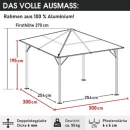 Der große Gartenpavillon mit durchdachten Abmessungen ermöglicht eine vielseitige Nutzung und genügend Raum für ihre Ideen: