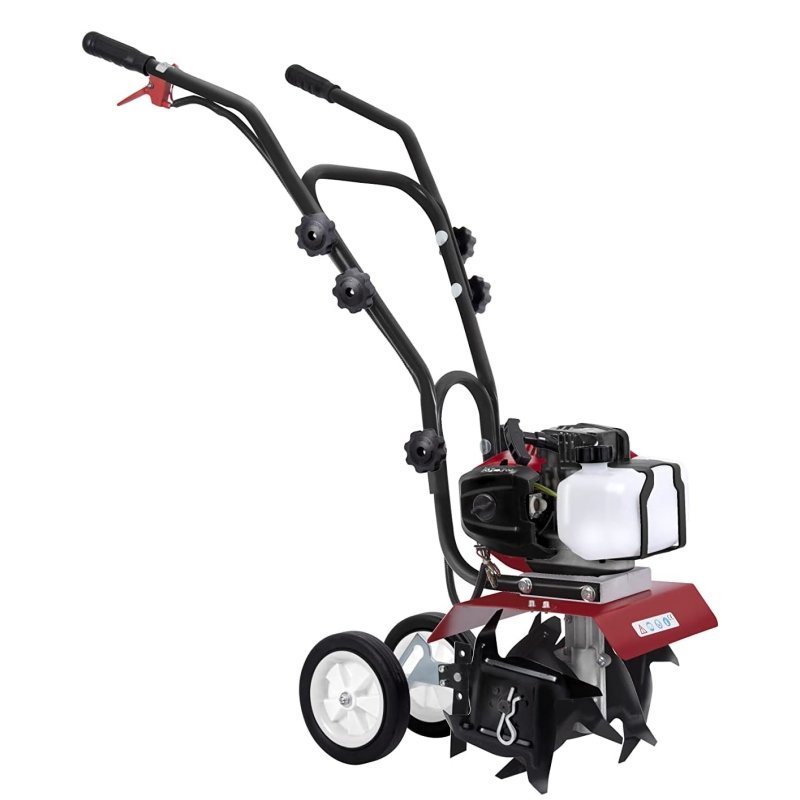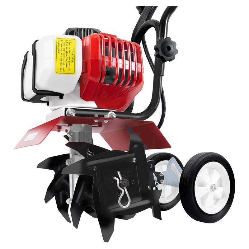 - Features: Equipped with a 52 cc petrol engine. a tank volume of 1.2 litres and a top speed of 9000 rpm as well as a powerful blade x 4 pieces for soil cultivation. With this lightweight petrol powered garden tool. you can easily cut through quite hard soil.