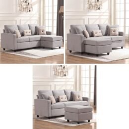 This sectional sofa showcases a sleek modern look that will look great with any style in your home. Soft fabric upholstery on a hardwood frame with overstuffed back cushions and foam seat cushion perfect for apartment, condo, loft, bungalow, house. No tools are needed and easy-to-follow instructions to assemble.
