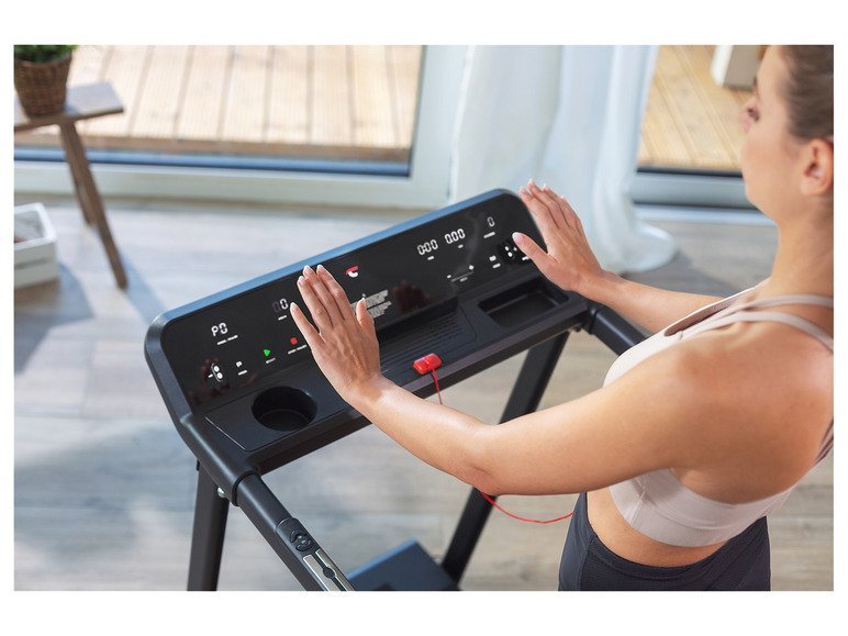 Darüber hinaus ist das Laufband mit der innovativen Gestensteuerung ausgestaltet. Durch die Handbewegung im Sensor-Empfangsbereich kann man das Laufband starten und stoppen oder die Geschwindigkeit verstellen.