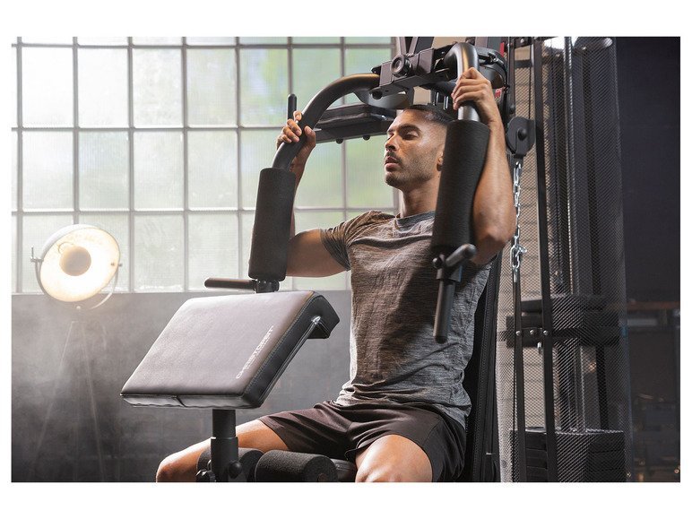 Die Kraftstation SP 5000 von Christopeit Sport ist für das Home Gym eine Fitnessstation. die zahlreiche Übungsstrukturen kombiniert. damit der gesamte Körper mit einem einzigen Gerät zu trainieren ist. Übungen für Brust. Rücken. Arme. Beine und Bauch können mit dem integrierten Equipment wie Latzug. Butterfly. Brustpresse. Biceps Curl sowie Beinstrecker und Beinbeuger durchgeführt werden.