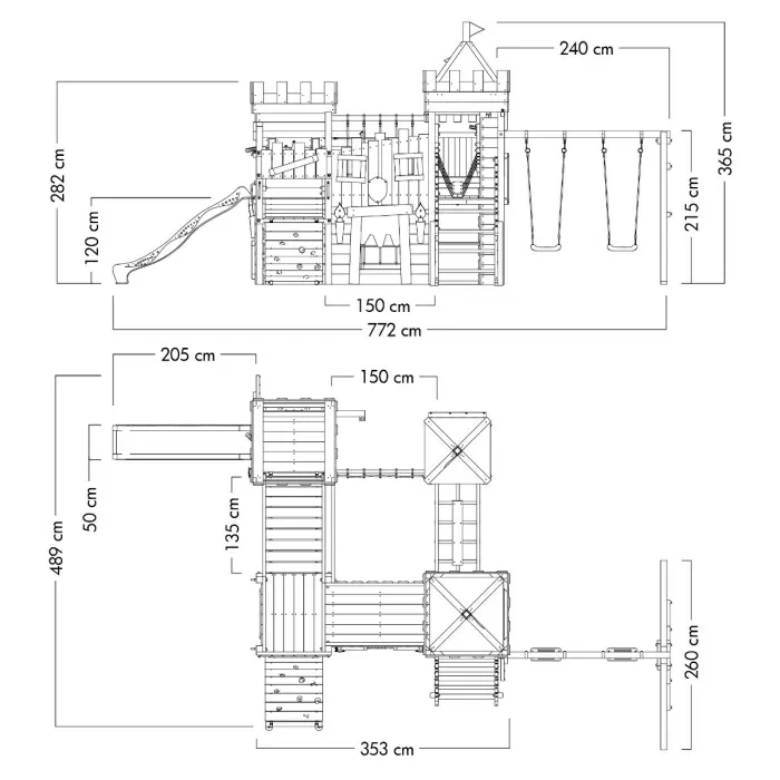 When dusk falls and the inhabitants of The Dancing Dragon climbing frame castle gradually settle down. you can see the shadow of the legendary dancing dragon in the sky. Determined to observe this exciting spectacle. the little adventurers embark on a journey they will never forget. They climb the gigantic castle walls and sneak nimbly over the suspension bridge. Then they continue. past torches and over the wobbly beam that leads to the watchtowers.