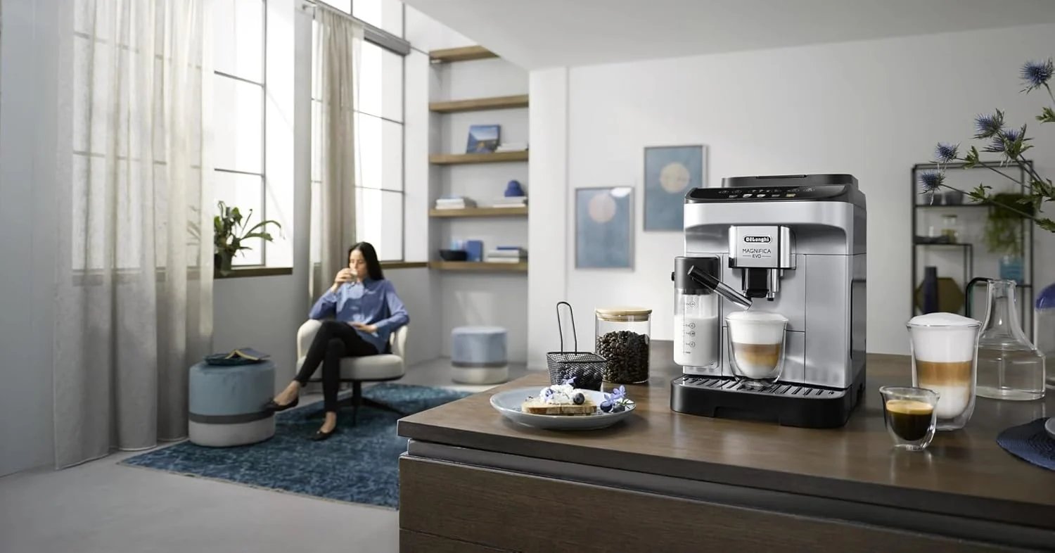 Experience DeLonghi’s expertise and technology at home with the new Magnifica Evo. Enjoy 5 expertly crafted beverages, from espresso to latte macchiato, at the touch of a button. The one-touch display panel and built-in conical burr grinder ensure fresh, aromatic espresso every time. DeLonghi’s Latte Crema System creates long-lasting, silky-smooth foam with milk or alternatives. Clean-up is easy with the auto-clean function and detachable, dishwasher-safe parts. Bring the cafe experience home with the intuitive Magnifica Evo.