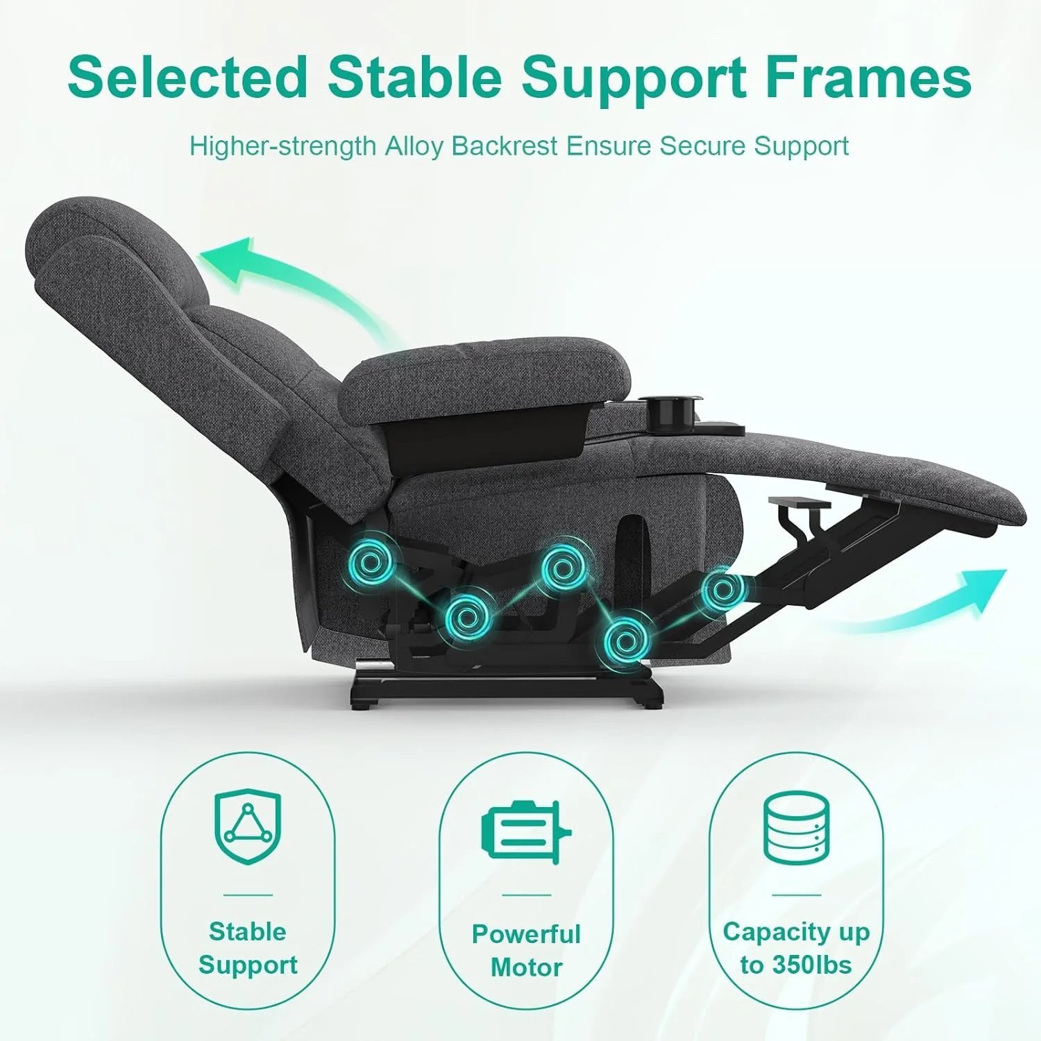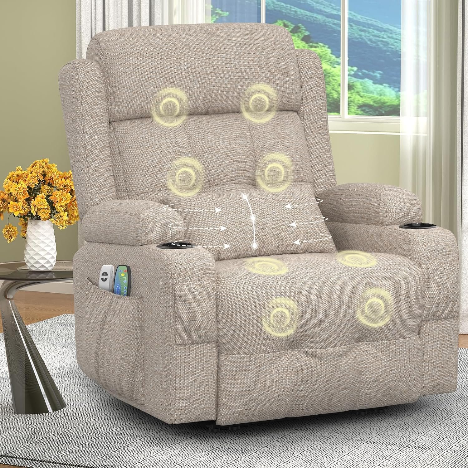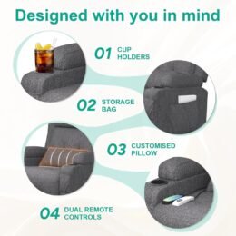 Electric adjustable massage chair with heating function, footstool, 2 side bag drink racks, C-shaped and USB ports, living room TV armchair