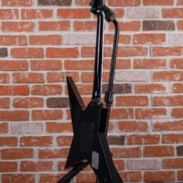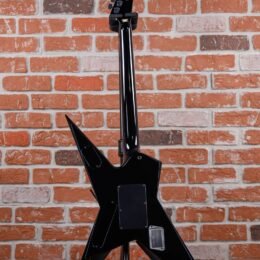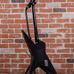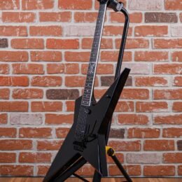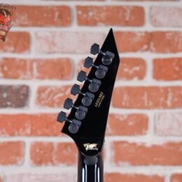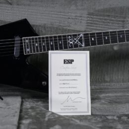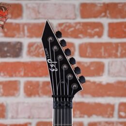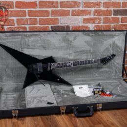 New ESP Custom Shop Sammy Duet Signature RS FR in Black finish made in Japan in 2025 with Original Hard Shell Case. This guitar features a solid mahogany wings body. 3-piece mahogany neck-thru and bound ebony fingerboard with bound reverse headstock. Equipped with a slanted direct mount Seymour Duncan AS-1 Blackout Strat Single Coil in the neck position and a Seymour Duncan AHB2B Blackout Metal Humbucker in the bridge position. Controlled by one master volume knob and a 3-way toggle switch. The 24.75″ scale length neck has mother of pearl diamond inlays. “Sigil of Lucifer inlay at the 11th-13th frets and 24 extra jumbo stainless steel frets on a 305mm radius with a thin U neck profile. The hardware is comprised of black Sperzel trim lok tuning machines. a Floyd Rose R2 locking nut. a Floyd Rose original double locking tremolo bridge and knurled black dome knobs.