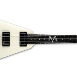 ESP LTD Vulture James Hetfield Signature in Olympic White finish made in 2023 with Original Hard Shell Case (B-stock.) This guitar features a solid mahogany body. 3-piece mahogany set-neck and macassar ebony fingerboard. Equipped with the EMG Het Set active humbuckers in the neck and bridge positions. Controlled by 2 volume knobs and a 3-way toggle switch. The 24.75″ scale length neck has pearloid dot inlays & custom Vulture at the 12th fret and 22 extra jumbo frets on a 350mm radius with a thin U neck profile. The hardware is comprised of black LTD locking sealed die-cast tuning machines. a molded nut. a Tone Pros Locking Tune-O-Matic bridge with locking stoptail and knurled black dome knobs.