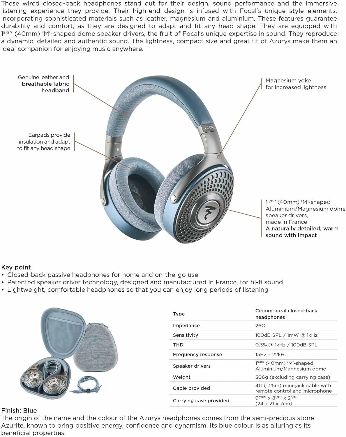 AZURYS passive headphones have a closed architecture, so you can use them at home but also when you are away. They are designed for all enthusiasts and music lovers who want to enjoy Focal sound through an affordable product.