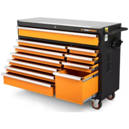 - 72 18 drawer GSX rolling tool cabinet features a heavy-gauge stainless steel worktop and a built-in charging station