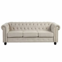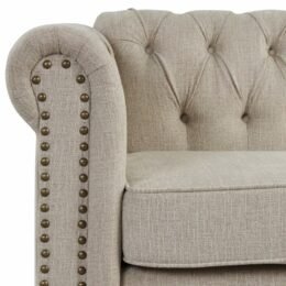 Designed with the traditional Chesterfield style of this seating group with prevalent button-tufted accenting, scrolled arms, and turned legs which is hard to overlook