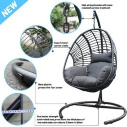 Great for Indoors & Outdoors- Egg chair is designed to be used inside or outside; Stand and chair combo makes it easy to add a stylish seat to an apartment without having to permanently install it into the ceiling; Makes a wonderful addition to the patio. deck. garden. yard. backyard. porch. bedroom. living room and other places around your home.