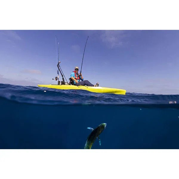 This fully-loaded fishing machine is built for every conceivable fishing expedition. whether you’re prowling the ocean for monster gamefish or stalking bass in your favorite freshwater fishing hole. Hobie has advanced the sport of kayak fishing with Kick-Up Fins that automatically retract upon impact.