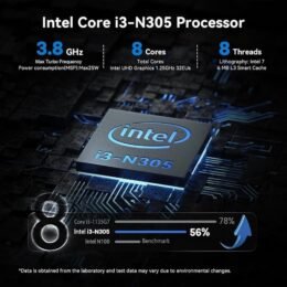 Processor: Intel Core i3-N305 Processor (Up to 3.80 GHz burst frequency, 6 MB Intel Smart Cache, 8 cores, 8 threads)