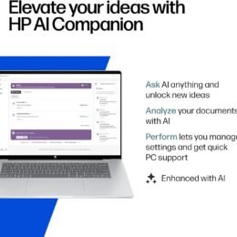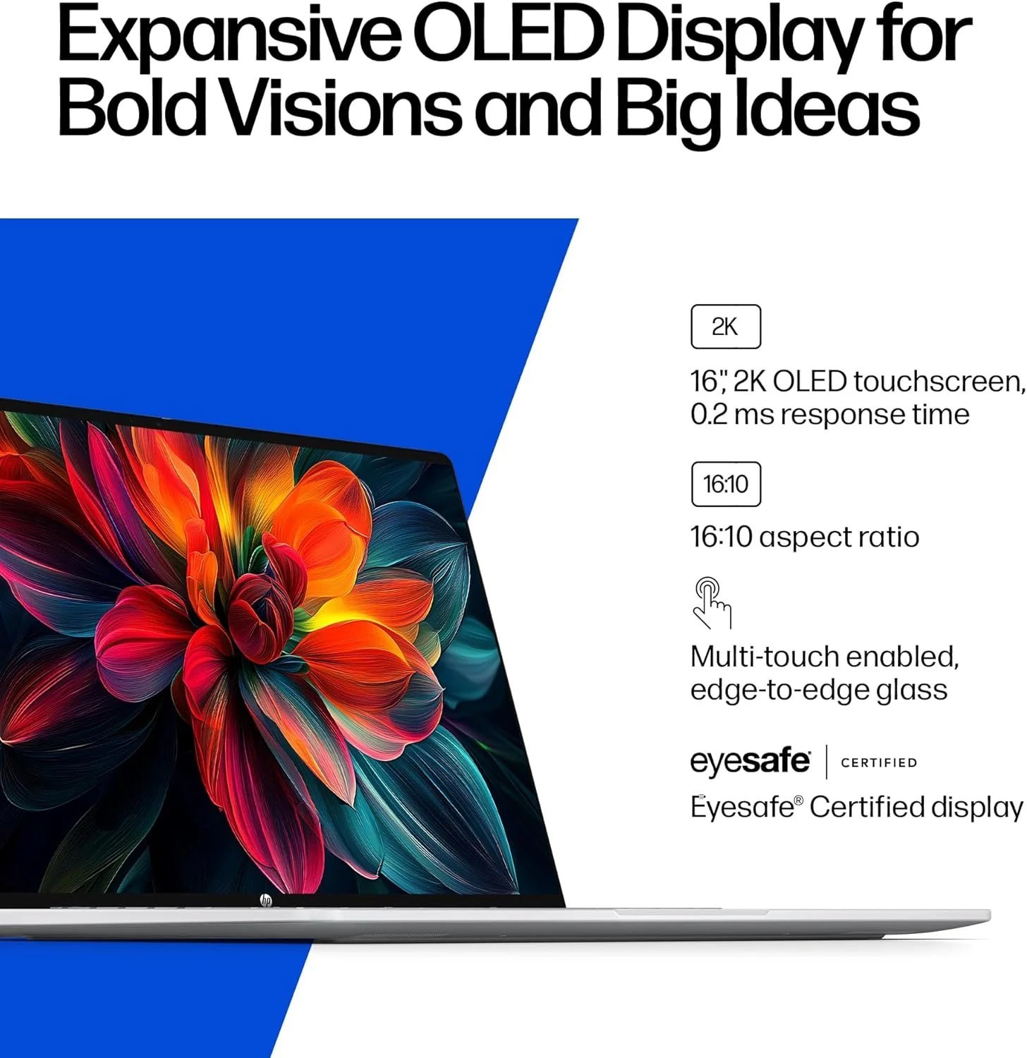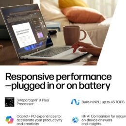 The HP OmniBook 5 16 inch AI PC, with the responsive Snapdragon X Plus processor, delivers AI-driven performance and an incredible battery life, so you can go all day and leave the charger behind. Your personal on-device assistant, HP AI Companion, helps streamline your workflow—no subscription required. The extensive battery life is engineered for efficiency, even with heavy multitasking and intensive workloads. Powered by Snapdragon X Plus and the dedicated AI engine that boosts speed and efficiency, you’ll experience advanced computing performance in an ultra-thin profile that’s designed for an easy on-the-go lifestyle. Enjoy an expansive audio-visual experience. The generous 16-inch 2K OLED touch display brings rich colors and deep contrast to every frame. Dual speakers with HP Audio Boost deliver immersive, high-quality sound, and the 1080p FHD IR camera ensures you always look your best on video calls. The HP OmniBook 5 Next Gen AI PC comes with a 65 W USB Type-C power adapter and goes from 0 to 50% charge in 30 minutes. Plus, it contains recycled materials and is built with ocean-bound plastic in bezel and speaker enclosures; recycled metal in top cover, base and keyboard support; post-consumer recycled plastic in keyboard keycaps and scissors. HP is here to help. This HP computer comes with 1-year limited hardware warranty and 1-year limited technical support for software and initial setup with 24-hour, 7 days a week web support when shipped from and sold by Amazon.com.