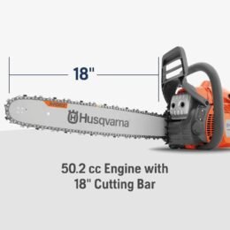 Husqvarna 445 Gas Chainsaw, 50-cc 2.8-HP, 2-Cycle X-Torq Engine, 18 Inch Chainsaw with Automatic Oiler, For Wood Cutting and Tree Trimming