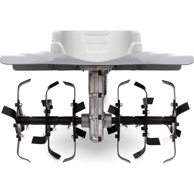 - Braking stand: the working depth and advance of the tiller can be influenced by an adjustable braking stand. which digs into the ground. as well as by the force exerted by the operator on the handles. solid handle and foldable for easy storage