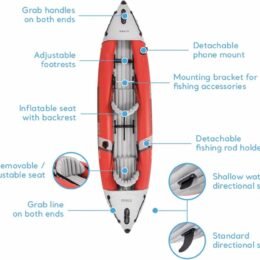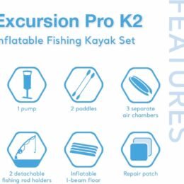 - ADVENTURE ACCESSORIES – Includes two 86 inch kayak paddles. two detachable fishing rod holders. one adjustable GoPro camera and mobile phone mount. high-output air pump and one repair patch