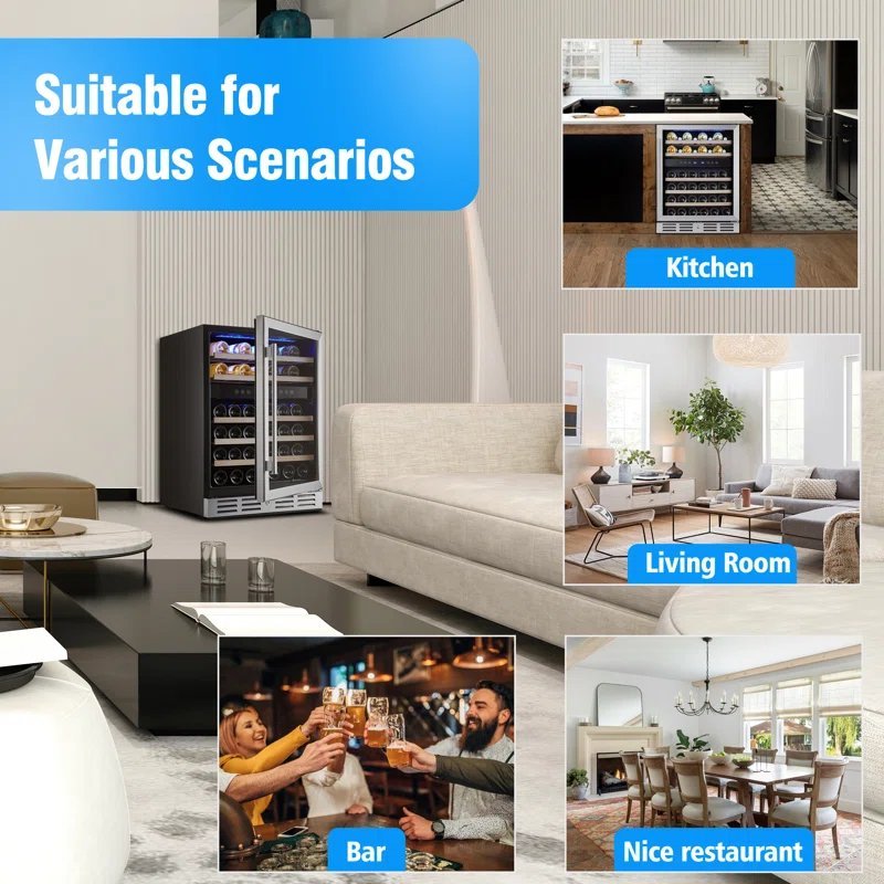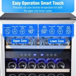 - DUAL ZONE CONTROL: Upper zone 40-50°F. lower Zone 50-66°F. So your wine is perfectly chilled in different temperature as you desired.