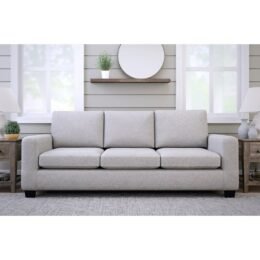 This 83β³ sofa has a classic design that adds a modern touch to your living or family room. It has a solid and engineered wood frame with rubberwood legs. Simple track arms allow this sofa to fit into compact spaces and corners to maximize the space in your living room. This sofa has polyester upholstery with fiber-wrapped foam cushions and polyfill pillow backs