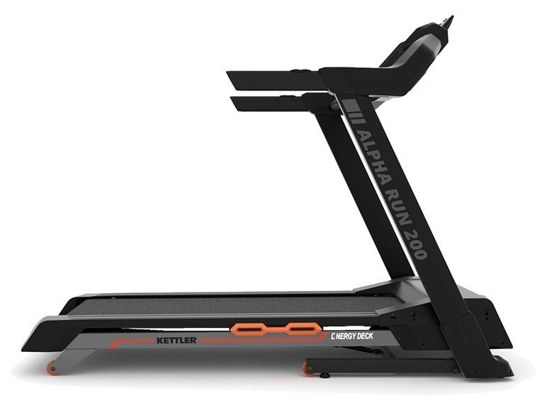 Mit dem Laufband ALPHA RUN 200 geniesst du dank dem Dämpfungssystem Kettler Energy Deck ein besonders leichtes Laufgefühl. Die Doppelwaben-Dämpfung fängt die Aufprallenergie auf und leitet sie zurück – mit der zurückgewonnenen Energie kannst du lockerer und vor allem länger trainieren. Über das einfach zu bedienende LC-Display kannst du verschiedene 32 Laufprogramme aufrufen. darunter auch Uphill-Training mit Steigungen von bis zu 12 Prozent und Trail-Running. Vier Nutzerprofile und ein zusätzlicher Gast-Nutzer speichern die Fortschritte. Über Bluetooth kannst du deine Sportuhr oder einen Brustgurt mit dem ALPHA RUN 200 koppeln. Als zusätzliche Motivation ermöglicht die Kinomap App den Zugriff auf über 120.000 km videorealistische Laufstrecken. die auf deinem Mobilgerät abspielbar sind. Mit integriertem Lautsprecher. Ventilator und Ablagefächer für Trinkflaschen. Handtücher und Sportuhren hast du bei diesem Laufband alles. was du brauchst. wenn du zuhause unterwegs bist. Das ALPHA RUN 200 macht dein Lauftraining so richtig komfortabel!