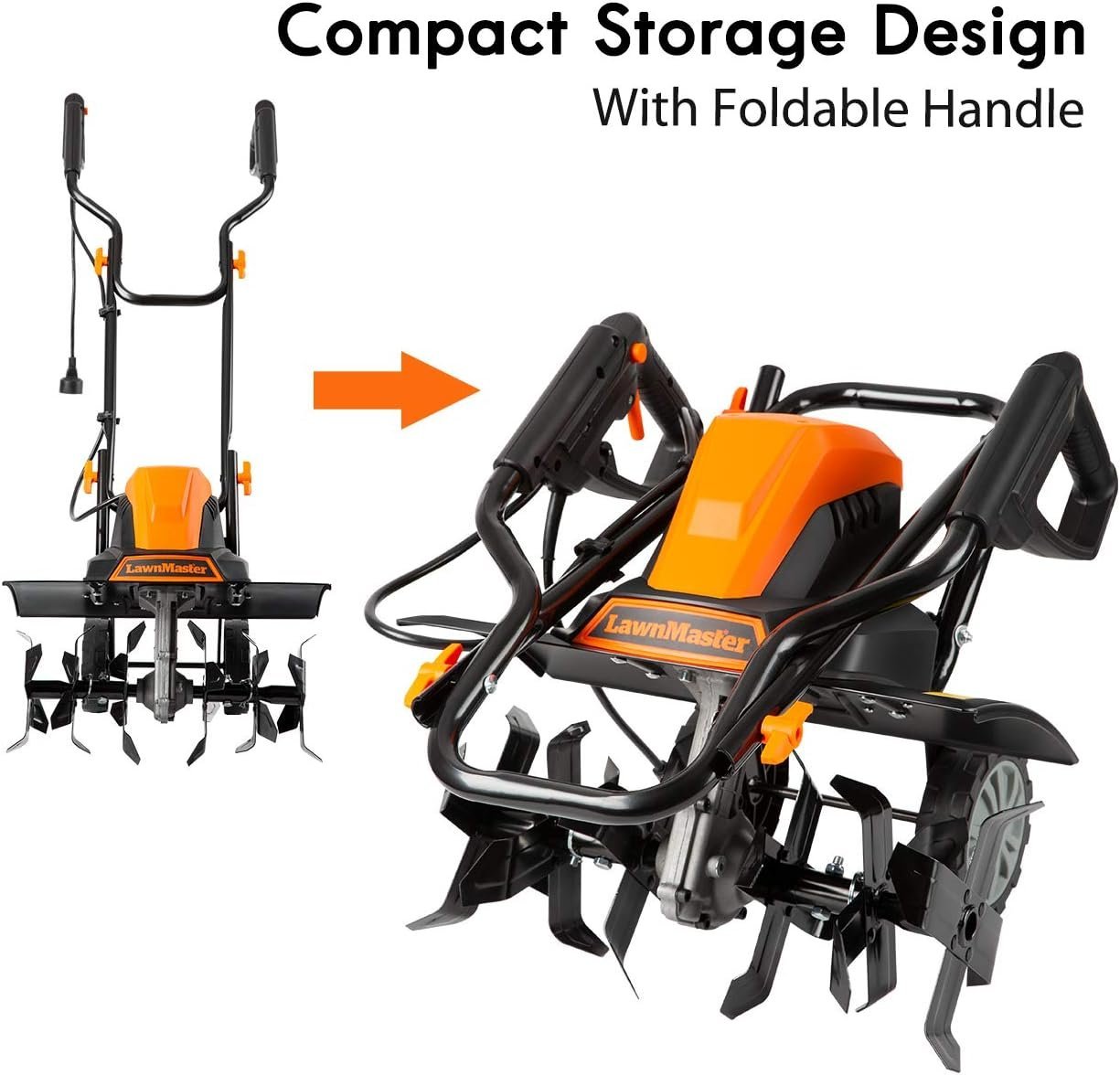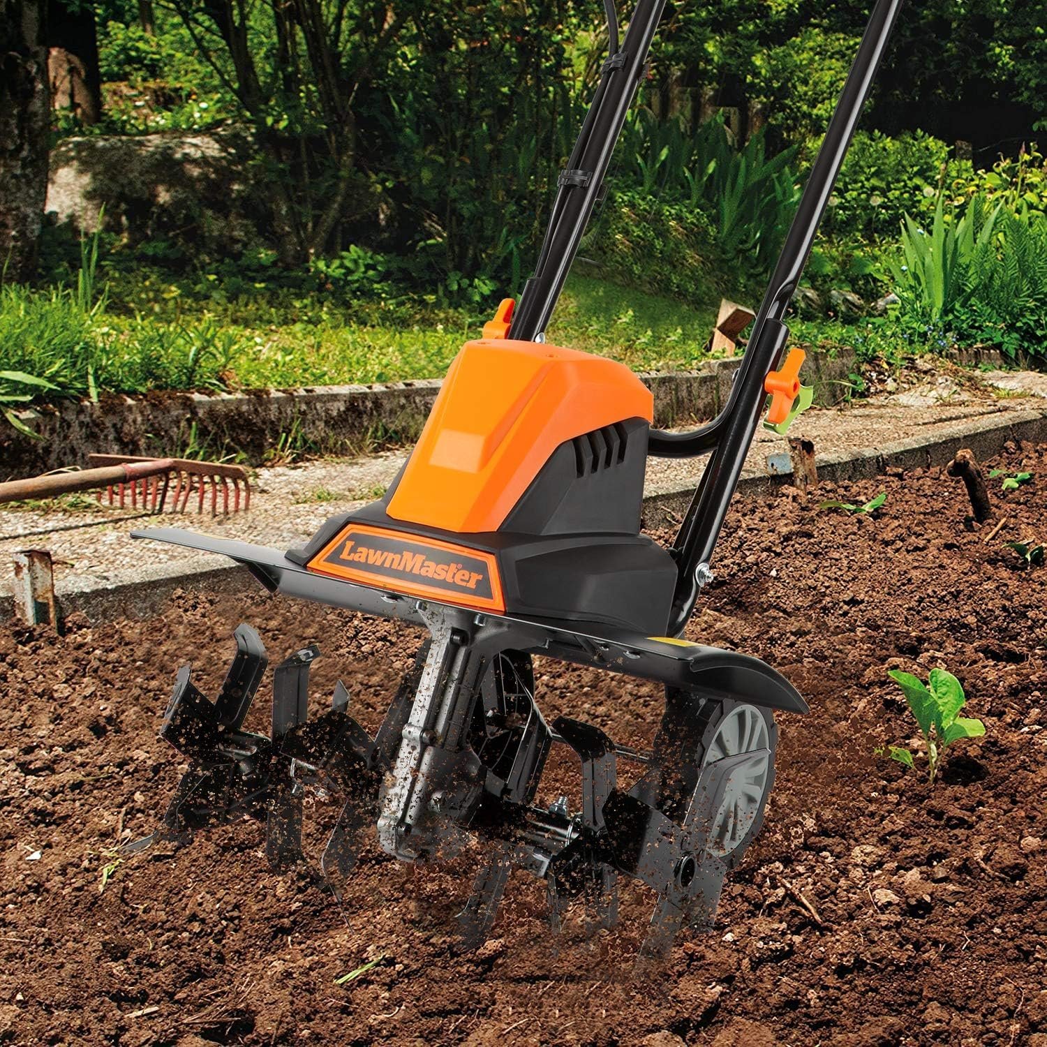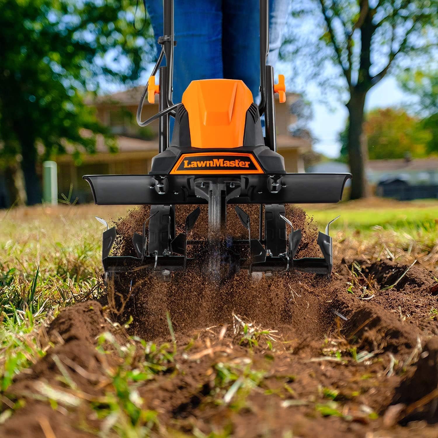 - 18-inch max cutting widthPowerful LawnMaster’s 13.5-Amp 18-Inch Electric Tiller With 9-inch cutting depth for effective tilling