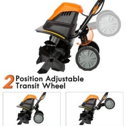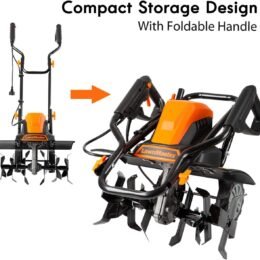 Loosen dirt for effective planting with LawnMaster’s 18-inch deluxe tiller. Powerful 13.5-amp motor and 6-steel blades cuts through the roughest terrain. Capable of tilling 18 inches wide and up to 9 inches deep. Two-stage gearbox has anti-block mechanical clutch. Runs at 390 RPM when free-spinning. This electric tiller provides a green. clean and efficient alternative to gas-powered tillers.