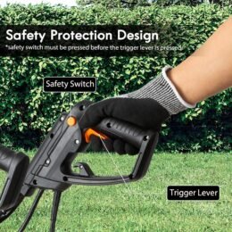 - Safety & convenientPressing the safety locking button to start it. then pull the trigger lever up and against the motor