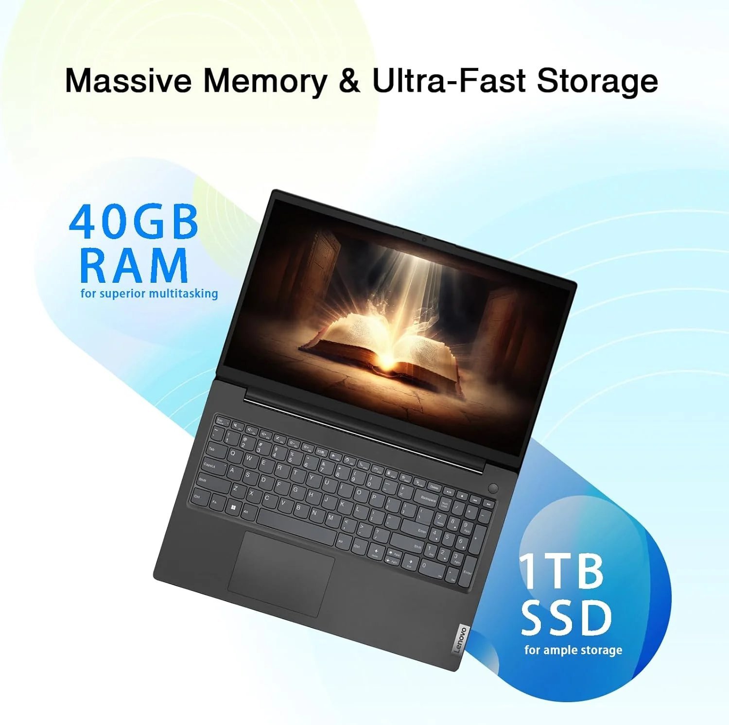 Lenovo V15 Business Laptop | Intel Pentium N6000 4-core Processor | 15.6 FHD (1920 x 1080) | 40GB RAM | 1TB PCIe SSD | Anti-Glare | WiFi-6 | Military Durability | Ethernet RJ-45 | Windows 11 Pro