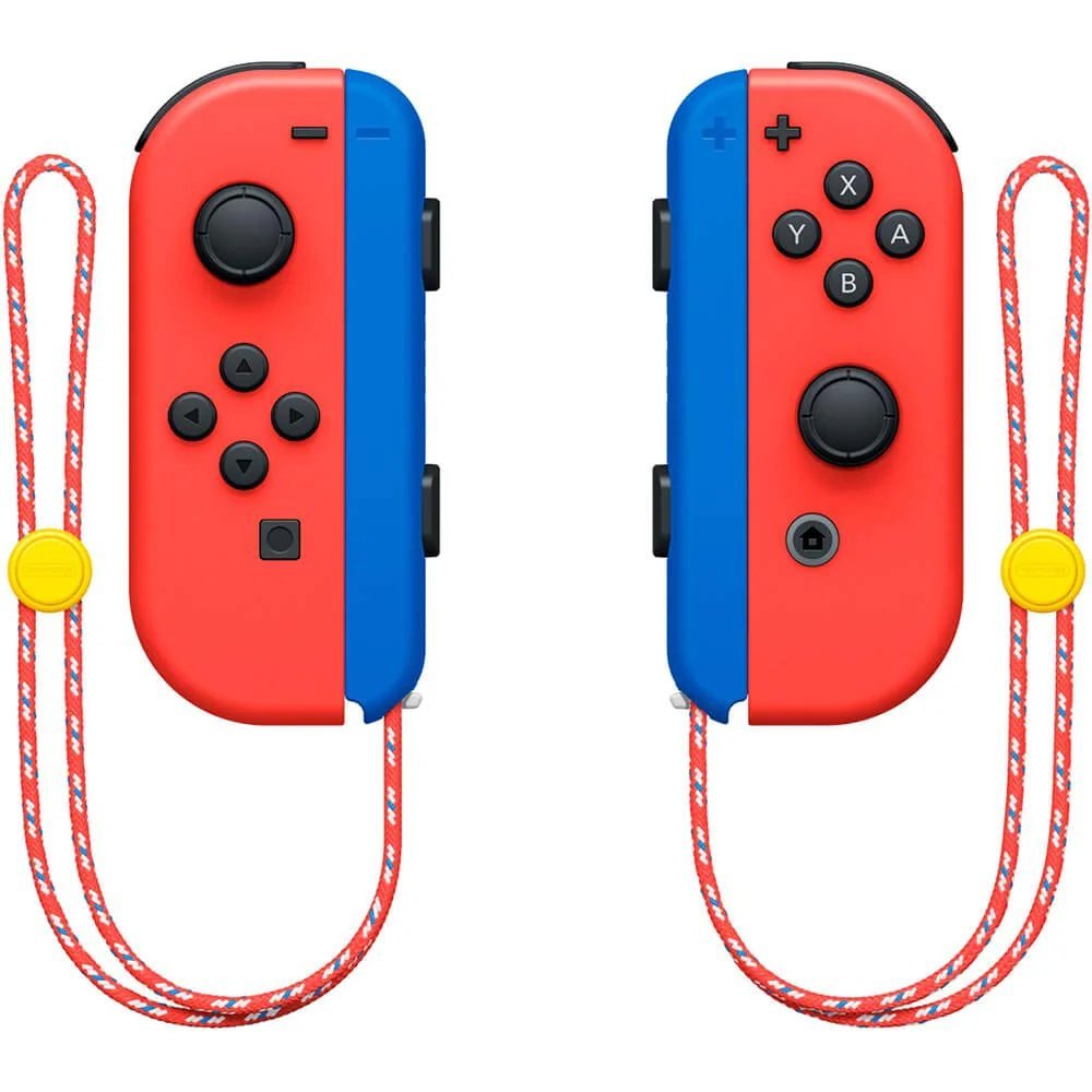 This Nintendo Switch system takes inspiration from Mario, with a bold red design on the Nintendo Switch Console, Joy-Con controllers, and the Nintendo Switch dock. A solid blue design is featured on both the Joy-Con grip and Joy-Con wrist straps. As a bonus, this Nintendo Switch Bundle includes a Mario red & blue Edition carrying case adorned with Super Mario iconography.