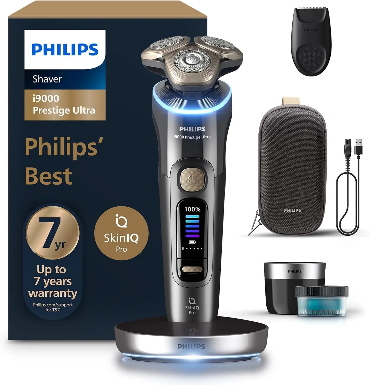 Philips i9000 Prestige Ultra, our most innovative shaver with Triple Action Lift & Cut system that cuts hair at root-level for day-long closeness, even in hard-to-shave-areas. SkinIQ Pro now brings 5 shaving modes for ultimate skin comfort