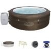 Composition du lot:Spa + sac de rangement + couvercle résistant isolant et vérrouillable + tapis de sol thermique + lampe d’ambiance LED + 2 appui-tête deluxe + 2 cartouches de filtration S1 + diffuseur de produit + application wifi