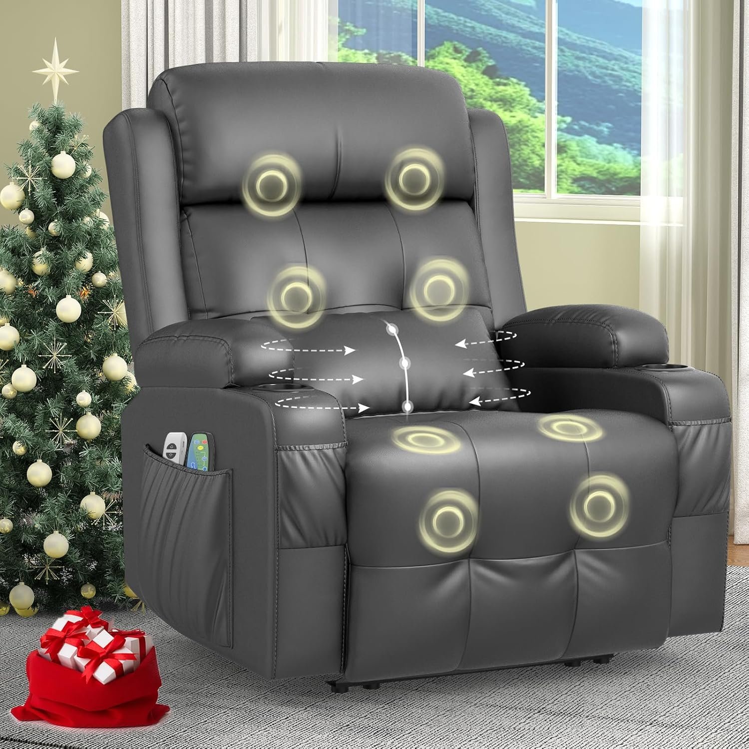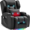 Relaxation chair, TV chair, electrically adjustable massage chair with heating function, footstool, 2 side bag drink racks, C-shaped and USB ports, living room TV chair