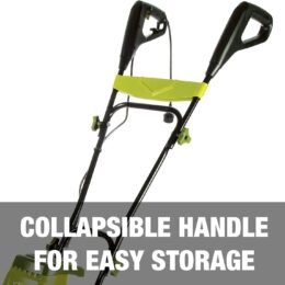 THE DIRTY LITTLE SECRET OF GREAT GARDENS. Experience the one tiller that’s truly up to the task! Introducing a greener. cleaner way to get dirty with the Sun Joe TJ604E Electric Tiller Cultivator. A powerful 13. 5-amp motor quickly pulverizes dirt. effortlessly slicing through the soil at 370 RPM. ensuring maximum aeration and perfectly preparing the seedbed for planting. Cultivate an area 16-inches wide and up to 8-inches deep in seconds. Control weeds where needed – Sun Joe tames the toughest yard and garden tasks with more comfort and less strain. 3-position. height-adjustable rear wheels make it easy to maneuver wherever it’s needed – and its collapsible handle makes it a cinch to store when it’s not.