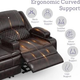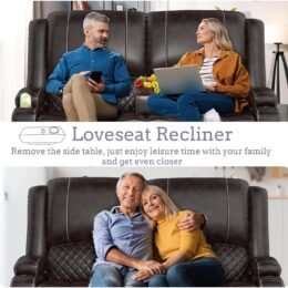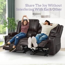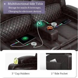 The two-seater sofa is adjustable. It features a semi-automatic relaxation function, a relaxation chair cover, an internal tray stand on the control console, dual USB ports, and side pockets