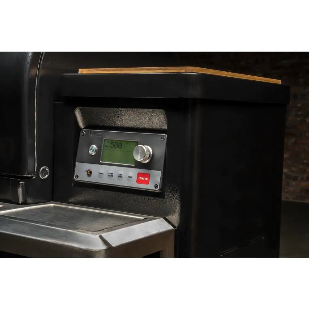 Find yourself engulfed in wood-fired flavor with the all-new Timberline 850. From steaks. to potatoes au gratin and even a baked chocolate souffle. re-think what outdoor cooking can be. This new edition of the Timberline series is where power meets precision thanks to the D2 Direct Drive drivetrain and WiFIRE enabled controller. This Traeger smoker includes a powerful new drivetrain yields optimal smoke production with true temperature precision. cook after cook. thanks to an industry first brushless motor and variable speed fan. The WiFIRE enabled controller allows you to monitor your food and change the temperature of your Traeger smoker anywhere at any time. Just download the Traeger App to connect your smartphone to the grill and bring a world of flavor to your fingertips. Make grill-to-table even easier with Grill Guide. Simply choose a recipe from the app. download to the controller and the grill will navigate the entire cook cycle for you. With the brand new Traeger Pellet Sensor. the Timberline will even alert you to add more hardwood pellets. The heavyweight champion of outdoor cooking welcomes you to the Hall-of-Flame.