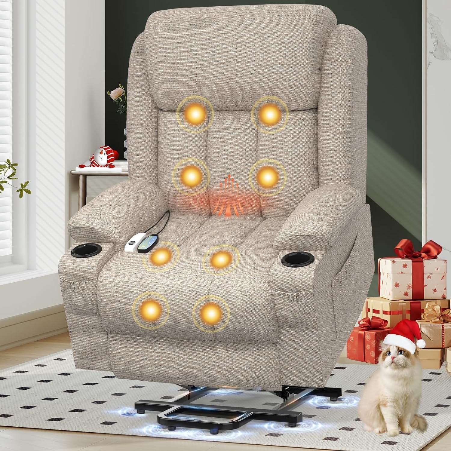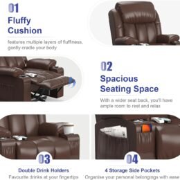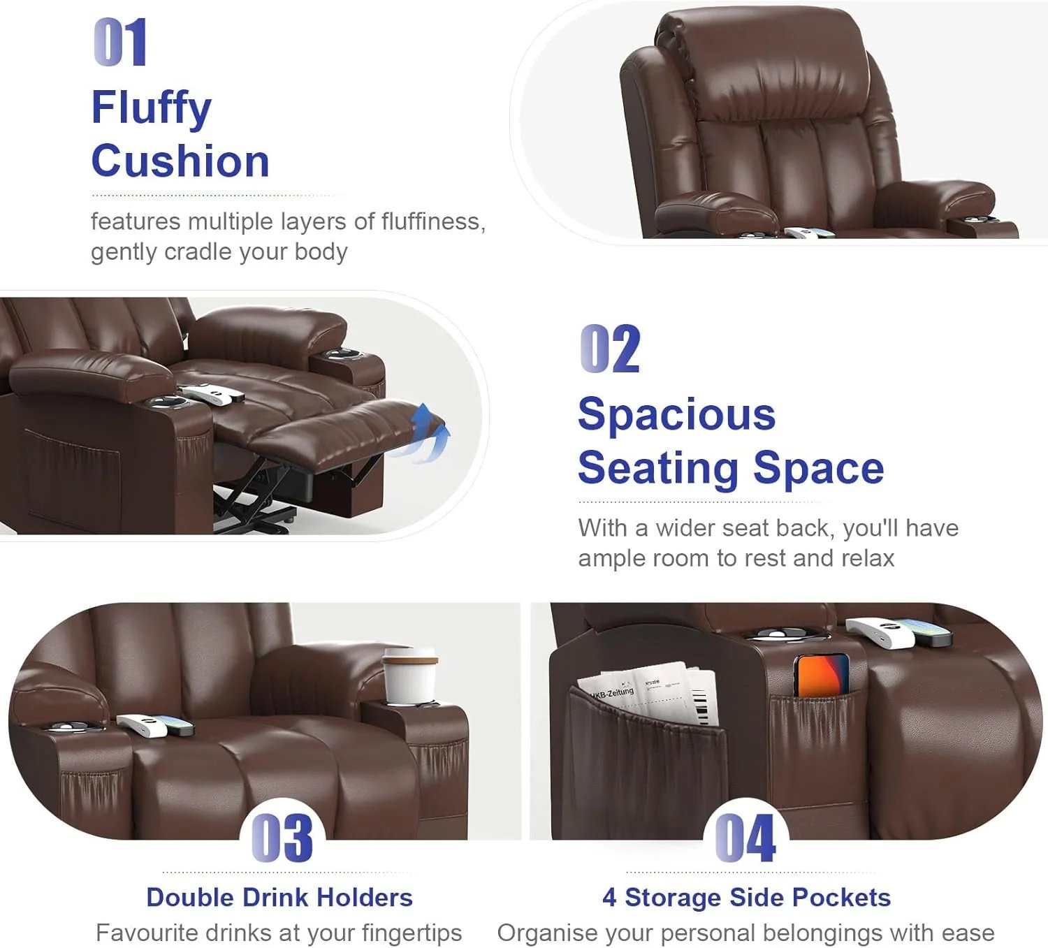 TV armchair, massage armchair, electric relaxation armchair with lounge chair function, stand up assist, massage heating, foot section, beverage rack, 4-side pocket, C-shaped and USB interface TV armchair lounge