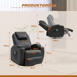 TV armchair, relaxation armchair, massage armchair, heating and vibration, remote control 360° rotation lever, black