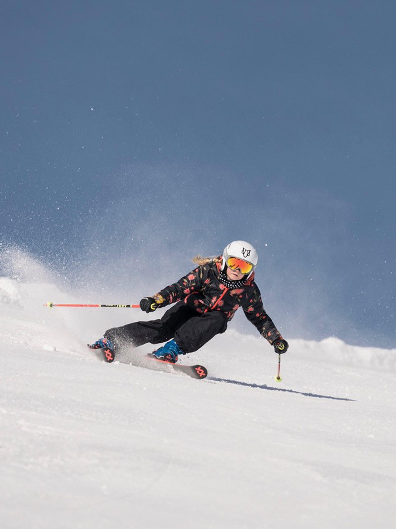 The Racetiger GS R is the perfect ski for ambitious U14/U16 athletes and features technologies that are also used in the World Cup. The Tailored Carbon Tip enables a very precise. direct and reliable tip response. which helps the athlete to ski a shorter and tighter radius to the gate. To achieve this. carbon fibers are stitched onto a carrier material. enabling precise torsional control. The two-layer Titanal. the beech and poplar wood core and the ABS sidewalls give the ski the necessary stability and dynamics so that every athlete can push their limits.