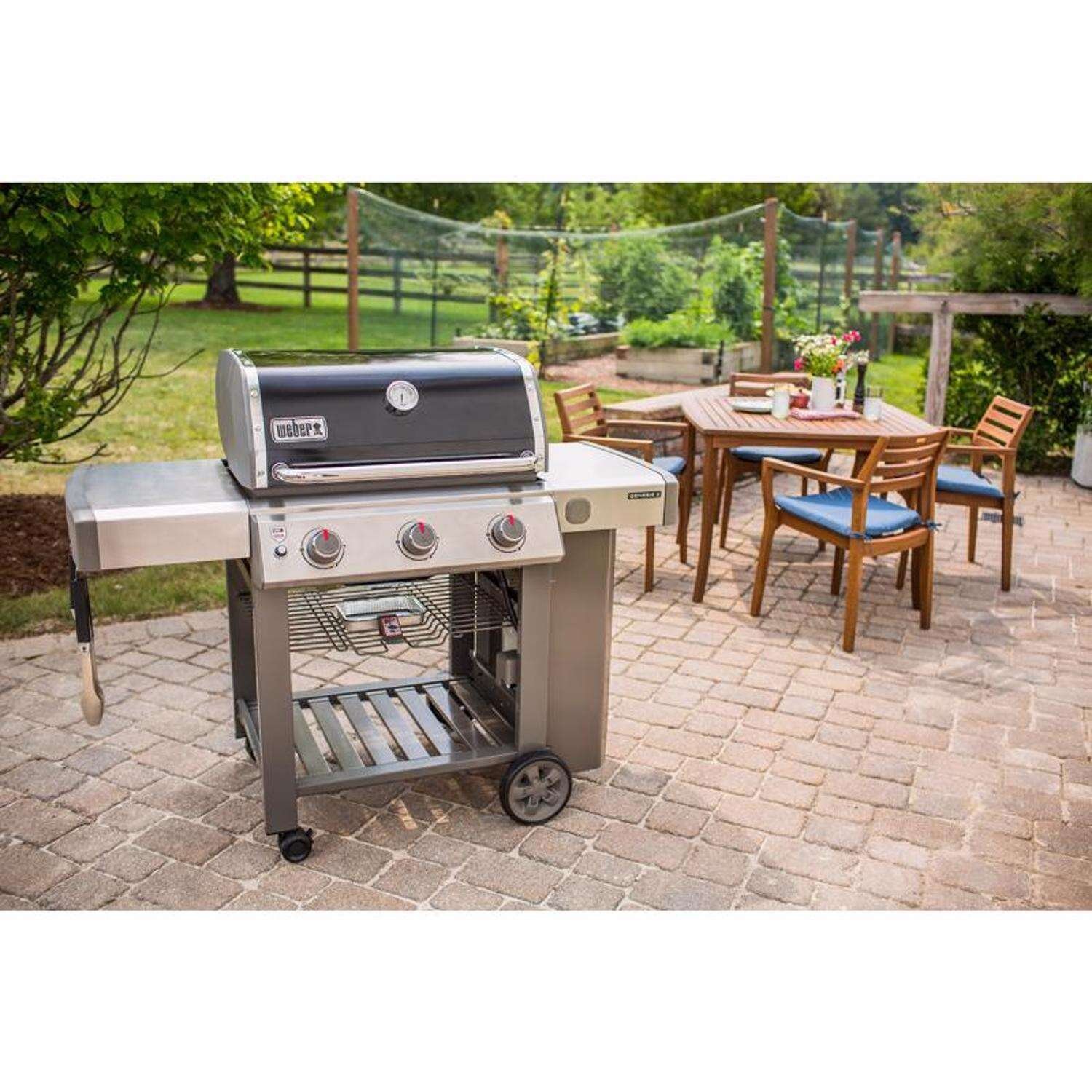 An exclusive world class grilling engine. Three powerful burners. with IGrill 3 smart technology compatibility. Backed by the Weber 10 year warranty on all parts of the grill. The Genesis II E310 gas grill is equipped with premium features such as porcelain enameled. cast iron cooking grates that are easy to clean and durable. The open cart design provides convenient access of grilling tools so that everything you need is within arms reach. The Tuck Away warming rack keeps food warm and folds for easy storage. The bar has been raised.