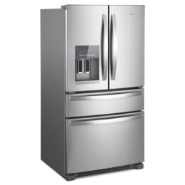 Get the storage you need in this refrigerator with water dispenser. An exterior refrigerated drawer keeps frequently used items within easy reach. This ENERGY STAR® certified refrigerator with LED lighting also gives you access to filtered ice and water without ever opening the door. Tap Touch controls are also as easy to clean as they are to use.