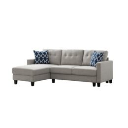 Enjoy cozy family movie nights and host classy cocktail parties alike all at this stylish sectional. The perfect centerpiece for your seating arrangement, it blends contemporary appeal with simple sophistication. The upholstery is accented with jumbo stitch detailing and a tufted accent for a refined yet understated look. The sofa and the chaise can be separated if you need to make more space in your living room ensemble.